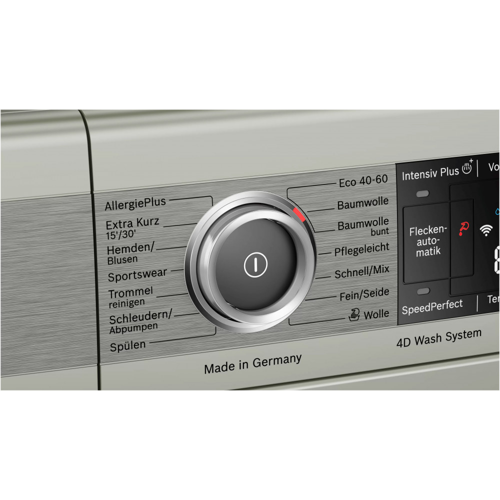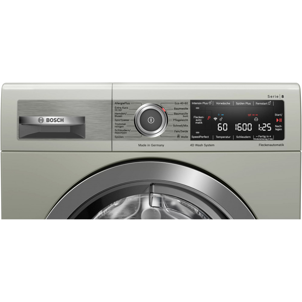 - دارای موتور EcoSilence Drive با صدای کم، راندمان و طول عمر بالا و صرفه جویی در مصرف انرژی سیستم Automatic Load Adjustment برای تنظیم میزان مصرف آب و انرژی نسبت به حجم لباس ها قابلیت SpeedPerfect برای کاهش زمان برخی از برنامه های شستشو حداکثر تا 65% سیستم 4D Wash برای اسپری آب و شستشوی کامل تر لباس ها ویژگی EcoBar Plus برای نمایش میزان مصرف انرژی و آب نسبت برنامه شستشوی انتخاب شده دارای کابل برق به طول 160 سانتی متر قابلیت Ready in برای شروع شستشو با تاخیر و تنظیم زمان پایان شستشو از 1 تا 24 ساعت پشتیبانی از دستیار صوتی الکسا (Alexa) (ممکن است برای تمام مناطق جغرافیایی در دسترس نباشد) دارای بوق (Buzzer) برای اعلام پایان برنامه شستشو سیستم AquaStop برای جلوگیری از نشت آب با گارانتی توسط بوش دیگ شستشو با حجم 70 لیتر یا ظرفیت XXL پشتیبانی از برنامه Home Connect برای کنترل و مدیریت ماشین لباسشویی از طریق موبایل (مخصوص موبایل های اندرویدی و iOS) پشتیبانی از اینترنت اشیا (IoT) برای مدیریت و کنترل ماشین لباسشویی از راه دور قابلیت Spin برای تنظیم سرعت چرخش دیگ به صورت دستی سیستم تشخیص کف (Foam Detection System) برای از بین بردن کف باقیمانده قابلیت Extra Rinse برای اضافه کردن مرحله آبکشی به برنامه شستشو برنامه AllergyPlus برای شستشوی کاملا بهداشتی و از بین بردن باکتری ها و آلرژی ها تا 99.99% قابلیت Intensive Plus برای شستشوی لباس های معمولی و بسیار کثیف سرعت چرخش 1600 دور در دقیقه (1600 rpm) دارای محفظه مواد شوینده تقسیم بندی شده مناسب استفاده از مواد شوینده مایع (Divider for Liquid Detergent) طراحی ضد لرزش (AntiVibration Design) برای کاهش لرزش و صدای لباسشویی هنگام کار استفاده از آب سرد بعنوان ورودی سیستم Unbalanced Load Detection برای تشخیص توزیع نامناسب لباس ها در دیگ و توقف شستشو در صورت نیاز قابلیت AntiStain برای انتخاب نوع لکه و از بین بردن آن هنگام شستشوی لباس ها برنامه Drum Clean مخصوص شستشو و ضد عفونی کردن دیگ لباسشویی و از بین بردن باکتری ها تا 99.9% قابلیت Rinse برای تنظیم تعداد آبکشی به صورت دستی قابلیت Prewash برای خیس کردن لباس ها پیش از شروع برنامه شستشو استفاده از مواد عایق صدا (Sound insulation) در ساخت ماشین لباسشویی نمایش حداکثر وزن البسه قابل شستشو برای برنامه شستشوی انتخاب شده تکنولوژی ActiveWater Plus برای مدیریت و صرفه جویی در مصرف آب متناسب با حجم لباس ها قابلیت Remote Start برای شروع برنامه شستشو ماشین لباسشویی از راه دور به کمک موبایل با برنامه Home Connect صفحه نمایش بزرگ از نوع LED محفظه مواد شوینده با امکان تمیز کردن آسان (Easy Cleaning Detergent Drawer) دارای دیگ شستشو VarioDrum با طراحی برجسته برای جلوگیری از آسیب رسیدن به لباس ها تضمین عملکرد و کارایی موتور EcoSilence Drive تا 10 سال توسط بوش قابلیت Temperature برای تنظیم دمای آب برنامه شستشو به صورت دستی قابلیت Child Lock برای قفل کردن پنل کنترلی و برنامه های ماشین لباسشویی دارای سنسور تشخیص میزان لباس ها (LoadSensor) سیستم شستشوی هوشمند (Intelligent Washing System) سیستم لکه بری (AntiStain System) برای شستشو و از بین بردن 4 نوع لکه مختلف با توجه به انتخاب کاربر قابلیت Reload برای اضافه کردن لباس حتی بعد از شروع شستشو دارای چراغ روشنایی داخل دیگ Drum Interior Light) Interior Drum Light)
