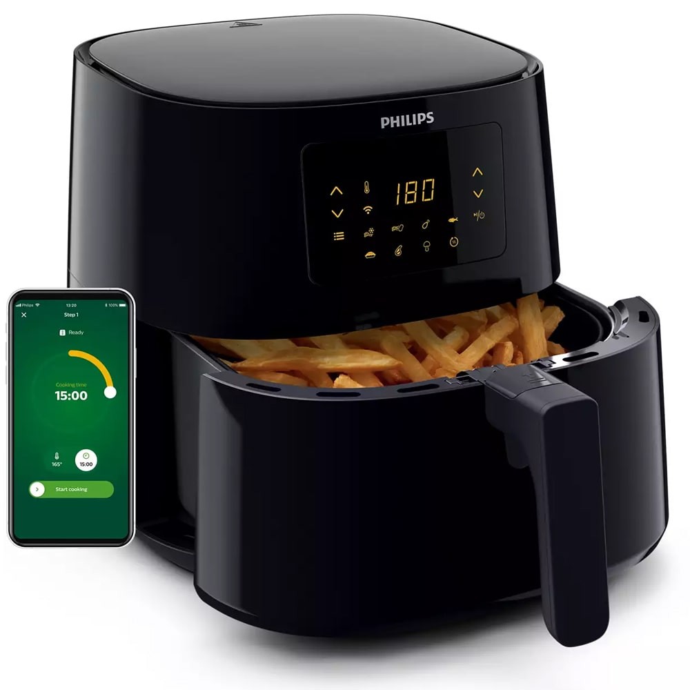 سرخ کن رژیمی فیلیپس مدل HD9280 مجهز به وای فای (WiFi) میباشد و به صورت بی سیم به گوشی شما متصل خواهد شد نتیجه اینکه میتوانید از راه دور نظارهگر پیشرفت و اتمام پخت و پز غذا باشید. میتوانید اپلیکیشن NutriU App را بر روی گوشی خود نصب کنید و به کمک آن، سالمتر غذا بخورید. این برنامه دستورهای غذایی بسیار متنوعی را در اختیار شما قرار میدهد که میتوانید به راحتی با سرخ کن تهیه کنید. پیشنهادهای روزانه آسان مطابق با سلیقه غذایی خود و خانوادهتان دریافت کنید. به خانواده NutriU بپیوندید و آشپزهایی که سلیقه غذایی مشابه با شما را دارند دنبال کنید و از آنها الهام بگیرید. قابلیت Automatic shut-off یا همان سیستم خاموش شدن خودکار در لیست مشخصات سرخ کن کم روغن فیلیپس 9280 قرار دارد که پس از پایان یافتن زمان پخت غذا آن را از طریق یک هشدار شنیداری به شما اطلاع خواهد داد. این سرخ کن 2000 واتی فیلیپس دارای قابلیت Cool wall exterior میباشد. این بدین معنی است که در هنگام روشن بودن دستگاه دیوار بیرونی آن خنک باقی میماند به علاوه دستگیره هم خنک خواهد بود و میتوانید به راحتی سبد کشویی را باز و بسته کنید.