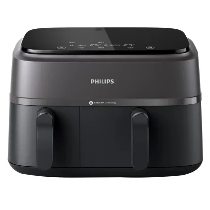 سرخ کن بدون روغن فیلیپس NA350 انتخابی هوشمندانه برای کسانی است که به دنبال تغذیه سالمتر بدون حذف طعم لذیذ غذاهای سرخکردنی هستند. این مدل با ظرفیت بالا و طراحی دوقلو، امکان پخت همزمان دو نوع غذای مختلف را در دو سبد جداگانه فراهم میکند، بدون اینکه طعم یا بوی آنها با یکدیگر ترکیب شود. این محصول جزو سری 3000 فیلیپس است، راهحلی مدرن و حرفهای برای پخت غذاهای خوشطعم و سالم است. NA350 فیلیپس با حداکثر قدرت 2750 وات و بهرهگیری از فناوری Rapid Air امکان پخت غذا را با حداقل روغن و در زمانی بسیار کوتاه فراهم میسازد. این فناوری با استفاده از گردش سریع و یکنواخت هوای داغ در اطراف مواد غذایی، امکان پخت، سرخکردن، گریلکردن، و حتی پخت کیک را با حداقل یا بدون روغن فراهم میسازد. در این سیستم، هوای گرم بهصورت چرخشی و با فشار بالا در داخل محفظه دستگاه به گردش در میآید. طراحی منحصربهفرد کف سبدها بهشکل ستارهدریایی نیز به توزیع یکنواخت هوا کمک میکند تا همهی قسمتهای غذا بهصورت یکنواخت پخته و طلایی شوند. سرخ کن دو قلوی فیلیپس سری 3000 با برخورداری از ظرفیت کلی 9 لیتر، یکی از مناسبترین گزینهها برای خانوادههای پرجمعیت یا کسانی است که بهطور روزانه حجم بالایی از غذا را تهیه میکنند. این ظرفیت از طریق دو سبد مجزا تامین میشود. سبد اصلی با ظرفیت 6 لیتر و سبد دوم با ظرفیت 3 لیتر قابل استفاده است. این طراحی هوشمند دو قلو به کاربران اجازه میدهد دو نوع غذای متفاوت را بهصورت همزمان و بدون ترکیب طعم یا بو آماده کنند. این ویژگی برای زمانی که قصد دارید در کنار غذای اصلی، یک غذای جانبی مثل سیبزمینی، سبزیجات یا پیشغذا آماده کنید، بسیار کاربردی است. اما نکتهای که این دستگاه را از مدلهای مشابه متمایز میکند، قابلیت همگامسازی زمان پخت در هر دو سبد است. با استفاده از این ویژگی هوشمند، دستگاه بهصورت خودکار زمان و برنامه پخت هر سبد را تنظیم میکند تا هر دو غذا در یک زمان مشخص آماده شوند. این قابلیت با انتخاب گزینهی Sync Finish فعال میشود و به شما این اطمینان را میدهد که بدون نیاز به مدیریت جداگانه هر سبد، هر دو وعده غذایی بهصورت همزمان، تازه و گرم آماده سرو خواهند بود. یکی دیگر از قابلیتهای هوشمند و کاربردی سرخ کن 350/00 امکان کپیکردن زمان و دما از یک سبد به سبد دیگر تنها با لمس یک دکمه است. این ویژگی زمانی کاربرد دارد که بخواهید در هر دو سبد، یک نوع غذا با شرایط پخت یکسان آماده کنید. با ورود به نسل جدید لوازم خانگی، سرخ کن دو قلوی فیلیپس نهتنها تجربهی آشپزی سالم را متحول کرده، بلکه با اتصال به اپلیکیشنهای هوشمند، شما را وارد دنیایی کاملا مدرن میکند. این دستگاه با پشتیبانی از دو برنامهی تخصصی +Kitchen و HomeID، امکاناتی فراتر از یک سرخ کن معمولی در اختیار شما قرار میدهد. اگر از تکراری شدن غذاها خسته شدهاید یا به دنبال راهی برای طبخ سالمتر غذاها هستید، اپلیکیشن +Kitchen بهترین همراه شما است. همچنین اپلیکیشن HomeID به شما امکان میدهد دستگاه خود را ثبت، مدیریت و بهروزرسانی کنید.