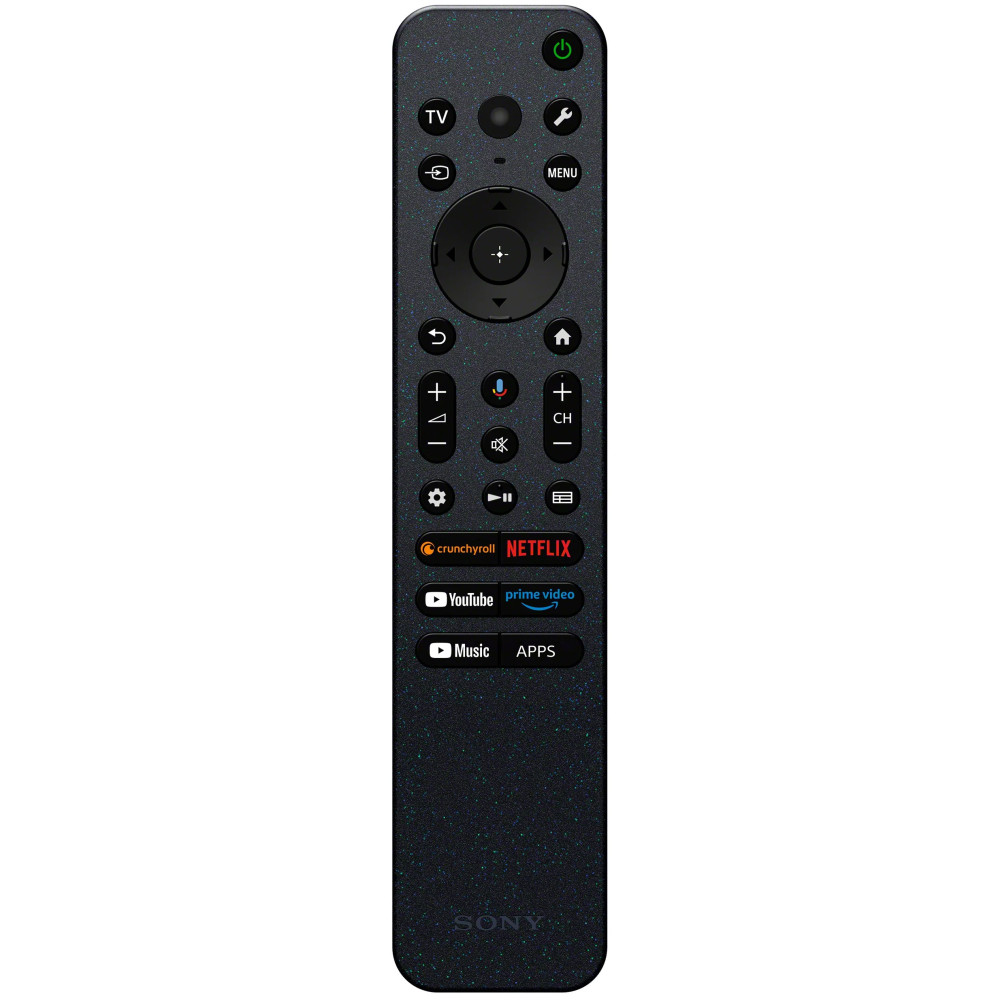 سونی امسال نیز این تلویزیون را به ریموت کنترل هوشمند و بلوتوثی مدل RMF-TX820M از نوع Standard Remote مجهز کرده است که از لحاظ عملکرد و حتی ظاهری تفاوتی با مدل سال گذشته خود ندارد. ریموت کنترل مذکور ابعاد بسیار کوچک و ظاهر بسیار مینیمالی داشته و خوش دست می باشد. از نظر ظاهری نیز این ریموت کنترل به شکل کهکشانی است و نقطه های برجسته ای به رنگ سبز و آبی دارد که باعث زیبایی بیشتر آن شده است. توجه داشته باشید که ریموت کنترل مذکور شارژی نیست و با دو باتری نیم قلمی کار می کند. برخلاف باور بسیاری از افراد، این ریموت کنترل ماوسی (موسی) نیست و همچنین خبری از نور پس زمینه دکمه ها و یا بلندگو نیز در آن نمی باشد. این ریموت کنترل از جنس پلی اورتان است و به راحتی تمیز می شود و بنا بر گفته سونی حتی قابل بازیافت بوده و با محیط زیست سازگار است. طبق ادعای سونی دکمه های این ریموت کنترل تا 99.9% آنتی باکتریال بوده و این موضوع می تواند برای کودکان یا افرادی که آلرژی دارند، اهمیت زیادی داشته باشد. طبق تستهایی که ما انجام دادیم، متوجه شدیم که ریموت کنترل این تلویزیون مونتاژ چین میباشد اما از کیفیت بالایی برخوردار است.