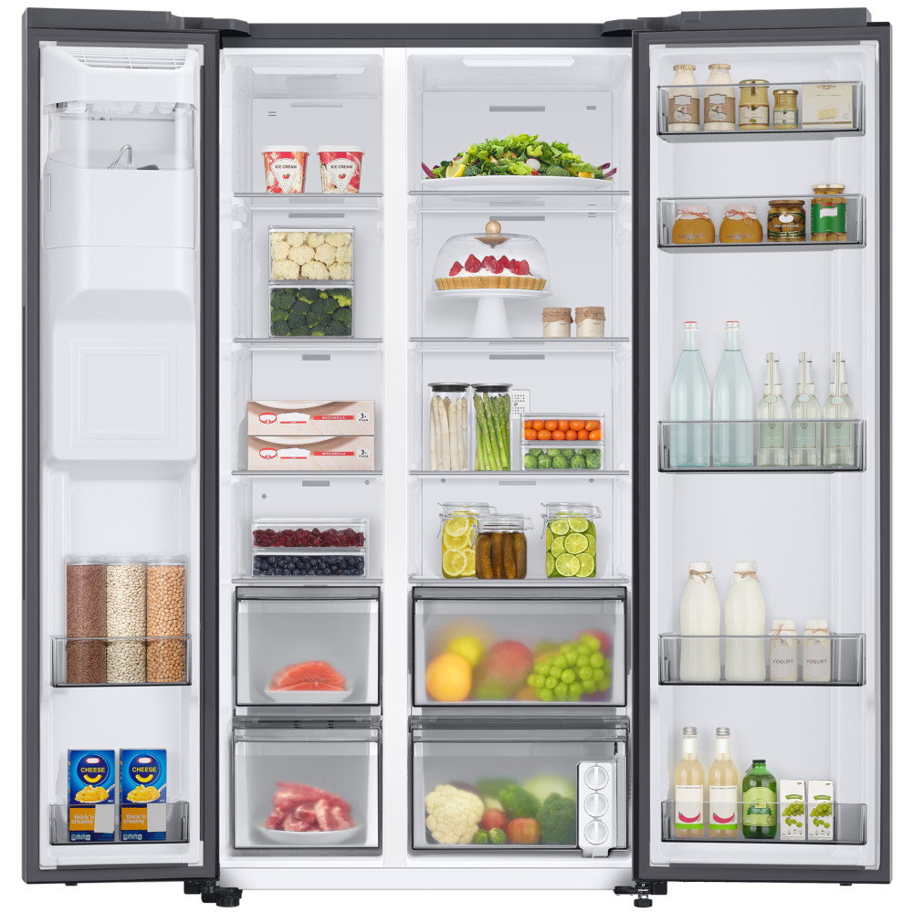متاسفانه سامسونگ در این یخچال فریزر از قابلیت Food Showcase یا به اصطلاح درب در درب استفاده نکرده است و این یخچال فریزر تنها دو درب دارد؛ بنابراین برای دسترسی به مواد غذایی داخل یخچال فریزر نیاز است که درب اصلی آن را باز کنید.